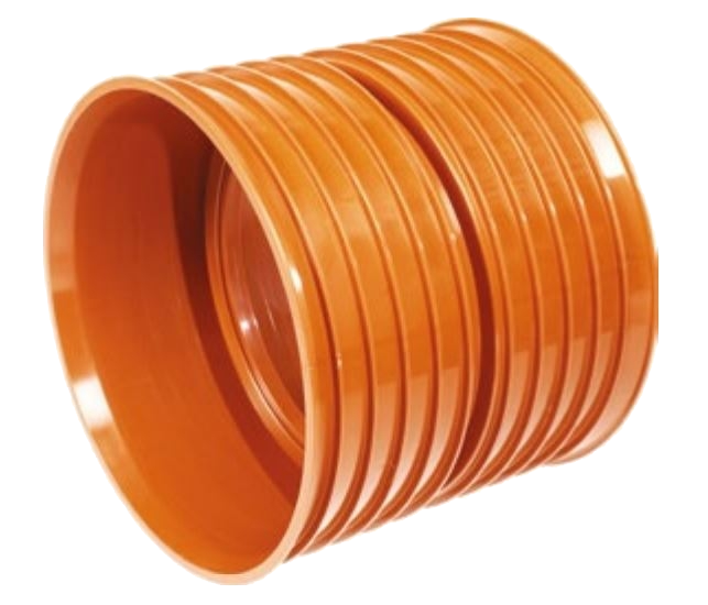 Múffa PP K2 SN8 er tengihlutur úr polypropylene (PP) sem notaður er til að tengja saman K2 fráveiturör í SN8 stífleikaflokki. Hún hefur riflaðan ytri vegg og sléttan innri vegg sem tryggir sterka og þétta tengingu.